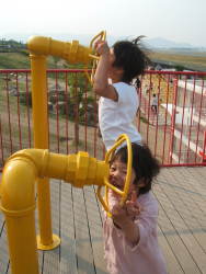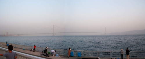 | 今日は明石の方面へ。昼過ぎてからの出発だったし、途中色々ショッピングに立ち寄っていたので、明石大橋を見れたのは既に夕方の5時すぎ。ちょうど、暗くなるとライトアップがともるので、きれかったです。 子供らは海岸で砂遊びをしたので、すぐ目の前にあるスーパー銭湯に立ち寄り、汗を流して帰りました。 |