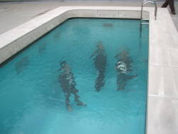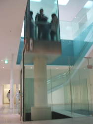 | 『スイミング・プール』レアンドロ・エルリッヒの作品 プールの底に人がいるような?実は強化ガラスで水面近くだけ少し水が張られています。この美術館の中で一番面白いですね。 |