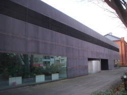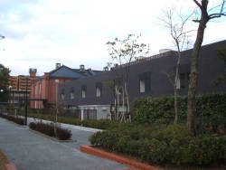 | 金沢市立玉川図書館 奥に見えるレンガ色の建物が谷口吉郎氏の設計、手前の近代建築が息子の谷口吉生氏の設計です。最初で最後の谷口親子の共同作品ということらしいです。 |